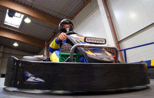 Ihr habt Euch für ein ganz besonderes Erlebnis entschieden, denn es geht nicht um das Kart fahren allein. Eure Herausforderung: Seid beim Kart fahren in Würzburg in Eurer halbstündigen Fahrt schneller als der jeweils andere! Auf der 300 Meter langen Indoor-Strecke warten zwei Ebenen, die mit einer Rampe verbunden sind, auf Euch. Schwierige Kurven, kurze Geraden und steile Rampen stellen Eure Geschicklichkeit auf die Probe. Beim Zeitfahren sind zusätzlich Präzision in den Kurven und Eure Performance besonders wichtig. Für Überholmanöver stehen Euren E-Karts pro Minute drei Sekunden lang 30% Zusatzleistung zur Verfügung. Wer am Schluss das beste Gesamtpaket auf die Strecke bringt, gewinnt die Challenge!
