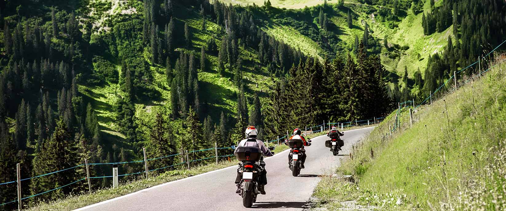 Einmaligen Fahrspaß mit Gleichgesinnten erleben. Motorradtouren und Rollertouren führen Dich in Naturparadiese, von den österreichischen Alpen bis auf die Trauminsel Mallorca. Auf hubraumstarken Choppern oder charmanten Vespas erlebst Du endloses Kurvenglück und traumhafte Aussichten. Fahrertrainings helfen Dir sicherer und souveräner durchzustarten.