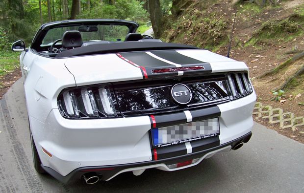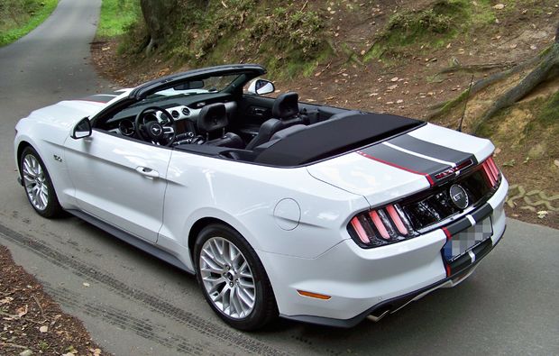 Fahrt in einem Ford Mustang GT Cabriolet verfügbar von Mo. - Do. (Farbe des Fahrzeugs kann variieren)