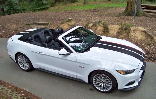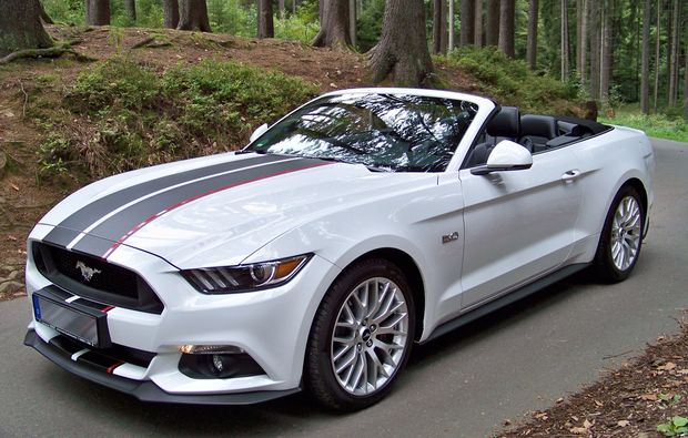 Fahrt in einem Ford Mustang GT Cabriolet verfügbar von Mo.-Do. (Farbe des Fahrzeugs kann variieren)