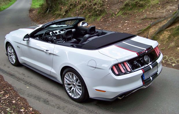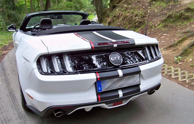 Fahrt in einem Ford Mustang GT Cabriolet von Fr. 13:00 Uhr bis Mo. 10:00 Uhr (Farbe des Fahrzeugs kann variieren)