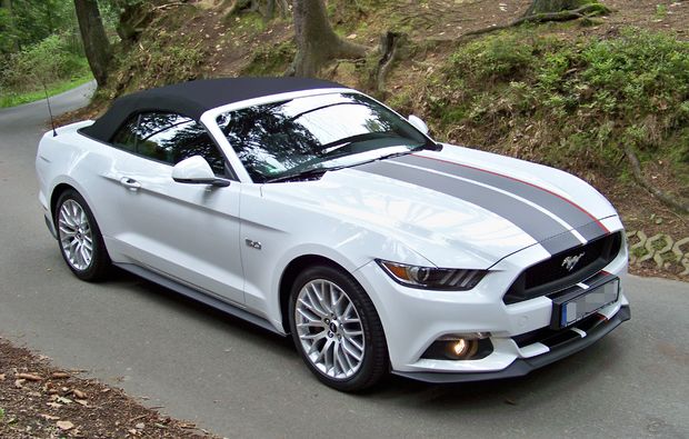 Fahrt in einem Ford Mustang GT Cabriolet verfügbar von Fr. - So. (Farbe des Fahrzeugs kann variieren)