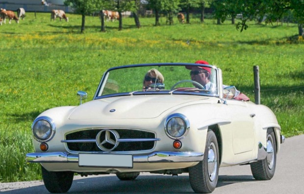 Oldtimer-Rallye für 2 Personen in einem der folgenden Fahrzeuge: Chevrolet Corvette C1 Cabrio, Jaguar E-Type Cabrio, Mercedes Benz 190 SL
