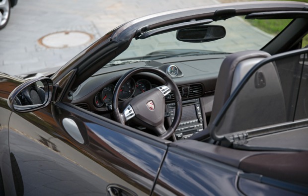 Dreh den Zündschlüssel – bei Porsche traditionell links – und erwecke den 3,8-Liter Boxermotor mit seinen 385 PS zum Leben. Wumm! Es klingt, als würde Herbert von Karajan persönlich das Orchester im Heck Deines Wagens dirigieren. Schöner kann ein Sportwagen nicht klingen. Schnall Dich an, leg den ersten Gang ein und lass mit Deinem rechten Bleifuß der Schwerkraft freien Lauf. In 4,7 Sekunden katapultiert Dich Dein Geschoss aus Zuffenhausen auf Tempo 100. Ein unbeschreibliches Gefühl in der Magengrube!