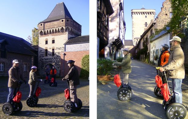 Wenn Du gerne Sightseeing betreibst, aber dieses einmal anders erleben willst als mit den üblichen Verkehrsmitteln oder gar zu Fuß, dann kannst Du Dich bei der Segway Tour in Dormagen-Zons auf ein außergewöhnliches Erlebnis freuen, das Du so schnell nicht wieder vergisst. Dein Sightseeing der etwas anderen Art beginnt mit einer professionellen Fahreinweisung in das moderne Gefährt. Dabei erläutert Dir der Tourguide, worauf es beim Fahren ankommt und wie Du Deinen Körper als Hilfsmittel benutzt, um das Tempo zu variieren und die Richtung zu verändern. Bei der Segway Tour in Dormagen-Zons wird Dir der Segway gestellt, sodass Du Dich gänzlich auf dieses unvergessliche Erlebnis freuen kannst. Schon bald genießt Du den unbändigen Fahrspaß und bist mit den Raffinessen genügend vertraut, um zu der geführten Segway Tour aufzubrechen, welche von einem ortskundigen Instruktor geführt wird. Dein Ziel ist die Zollfeste Zons, wobei Dich der Weg vom Startpunkt aus über Felder und durch Wälder führt, deren Anblick Du mit allen Sinnen genießen kannst, während Du mit dem Segway dahingleitest. Während Deiner Fahrt gibt es so einiges zu entdecken, weshalb die zwei Stunden Dir ganz besondere Momente bereiten, die Du nicht mehr missen möchtest. Am Ziel angekommen, folgt die Besichtigung der Zollfeste Zons. Dabei versorgt Dich der Tourguide mit allerlei spannenden Informationen, die Dir einen neuen Blickwinkel auf dieses imposante jahrhundertealte Gemäuer gewähren. Hier wird Geschichte lebendig, sodass Deine Segway Tour in Dormagen-Zons vielfältige und aufregende Facetten für Dich bereithält. Nach der Besichtigung trittst Du dann so langsam wieder den Rückweg an und kannst dabei die zahlreichen Impressionen noch einmal Revue passieren lassen. Diese Kombination lässt Dich voll auf Deine Kosten kommen und bietet Dir alles, was Dein Herz begehrt für aufregende Stunden voller einzigartiger Momente. Lass die Vergangenheit auf die Moderne treffen und erlebe ein etwas anderes Sightseeing bei der Segway Tour in Dormagen-Zons.