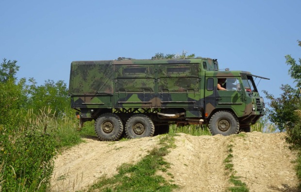Ein exotischer Mix aus LKW, Militärfahrzeug und Jeep: Mit dem Volvo Lappländer navigierst Du ein außergewöhnliches Gefährt! Offroad-Vergnügen ist beim Geländewagen fahren in Großmehring, bei Ingolstadt, garantiert.