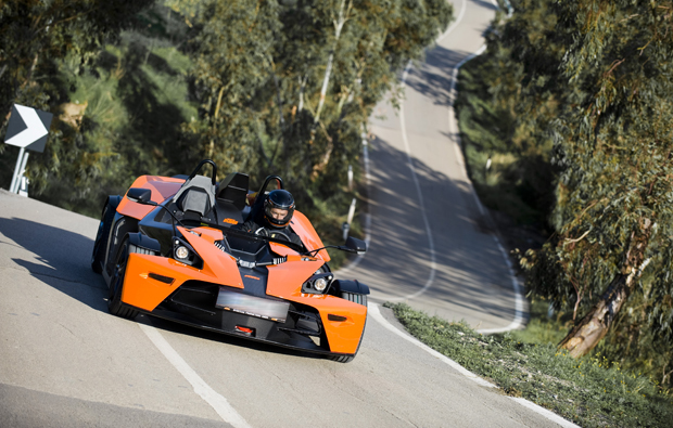 In nur 3,9 Sekunden katapultiert Dich der mit einem 2.0 TFSI Motor von Audi ausgestattete KTM X-BOW von 0 auf 100 km/h. Seine einmalige Fahrdynamik verdankt der KTM X-BOW unter anderem einem aus Kohlefaser gefertigten Monocoque. Elegant und aufs Wesentliche reduziert – diese geradlinig designte Rennmaschine verzichtet auf Gimmicks wie Radio oder Klimaanlage. Purer Fahrspaß auf der Landstraße oder der Autobahn ist somit mehr als garantiert und du wirst dynamisch durch Kurven gleiten und das einzigartige Fahrgefühl dieses Wagens spüren.