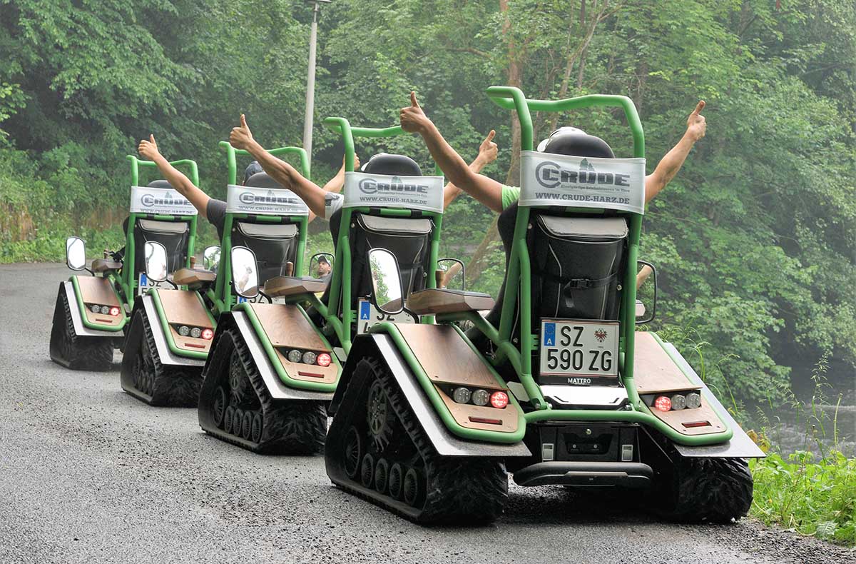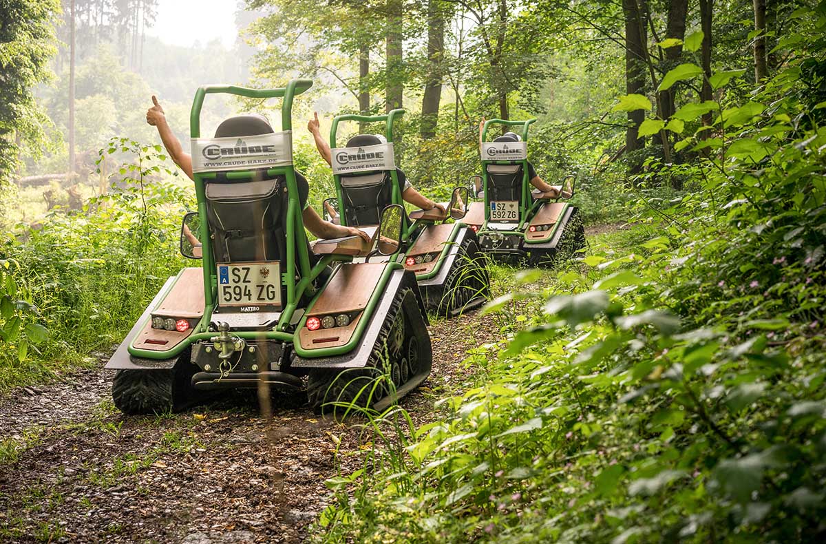 Mitten in der ruhigen Natur rund um Stiege wartet ein eindrucksvolles Fahrerlebnis auf Dich. Kaum sitzt Du im Ziesel Street 4.0, spürst Du die Verbindung von Technik und Landschaft – nahezu lautlos und dennoch kraftvoll steuerst Du das wendige Elektrofahrzeug über schmale Pfade und sanfte Anstiege. Der weite Blick auf das Vorharzer Panorama begleitet Dich dabei fast die ganze Zeit. Geführt von einem ortskundigen Guide wirst Du sanft an das Ziesel fahren herangeführt und bewegst Dich schon bald selbstsicher durch das Gelände. Die Tour schenkt Dir nicht nur Ruhe, sondern auch kostbare Erinnerungen. Lass Dich auf die Ziesel Tour durch Stiege ein – Deine Zeit an der frischen Luft wartet schon.