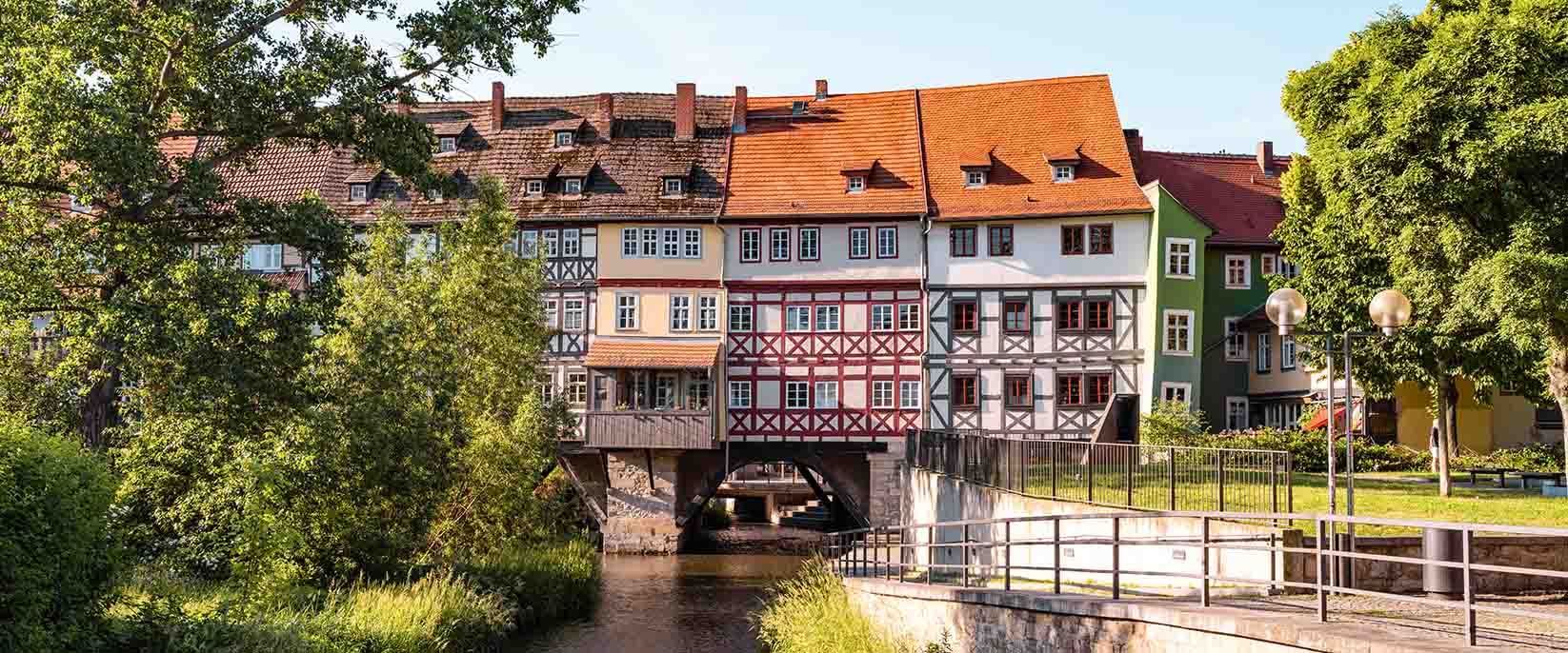 Gestartet in der romantischen Altstadt könnt Ihr bereits das größte Flächendenkmals Deutschlands bestaunen – die Altstadt selbst. Ihr mittelalterliches Flair zusammen mit der faszinierenden Geschichte bieten Kultur pur. An den liebevoll rekonstruierten Fachwerkhäusern und prachtvollen Patrizierhäuser, geht es weiter entlang der vielen Kirchen und Kloster. Bei der Entdeckung Erfurts, darf das Betreten und ein Foto der Krämerbrücke natürlich nicht fehlen. Die Krämerbrücke zählt als Wahrzeichen der Stadt. Mit 32 Häuser und 120 Meter Länge, ist sie die längste komplett bebaute Brücke Europas. Die vielen kleinen Geschäfte auf der Brücke symbolisieren das frühere Händlerleben der Krämer (=Händler), das auf der Brücke stattfand.