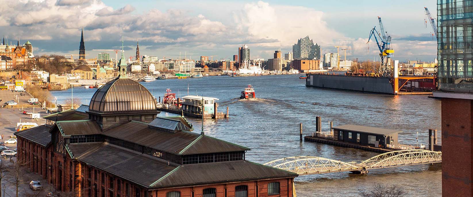 • Start am Hamburger Hafen, entlang die Elbe