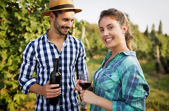 Stoßt auf eure Liebe an und freut euch auf traute Zweisamkeit inmitten von Weinbergen.