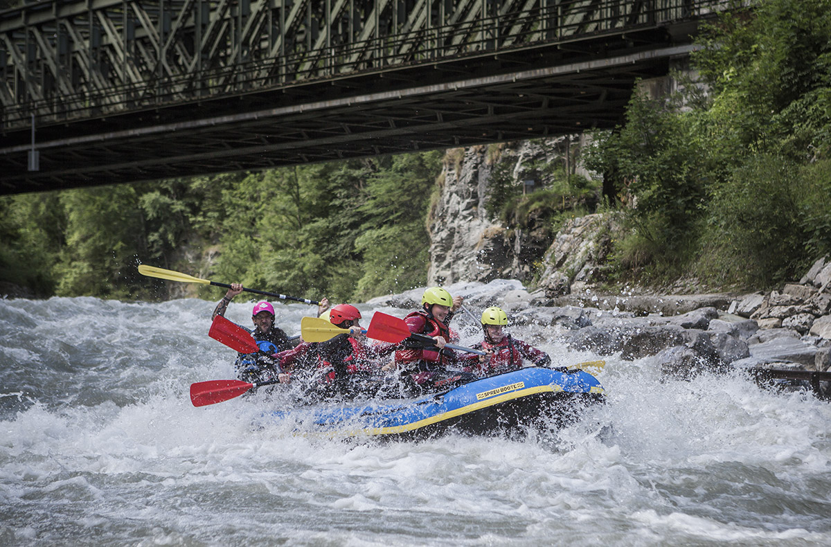 Los geht es mit der Canyoning-Tour durch die Almbachklamm – ein der berauschendsten Schluchten im Salzburger Land. Hier erwarten Dich Herausforderungen verschiedenster Natur – von waghalsigen Sprüngen und wilden Schwimmpassagen über lustige Wasserrutschen bis hin zu kleineren Abseilpassagen ist hier für jeden Bergsportgeschmack gesorgt. Die Sprünge können bis zu acht Meter hoch sein – Du hast also alle Möglichkeit, Deinen Wagemut unter Beweis zu stellen! Nach drei bis vier Stunden hast Du diesen Teil Deines Abenteuers beim Canyoning und Rafting in Golling an der Salzach erfolgreich überstanden. Nach einer kleinen Verschnaufpause geht es dann weiter ins kühle Nass. Der Transfer bringt Euch nach Eschenau bei Zell/See, wo Ihr, natürlich mit der entsprechenden Ausrüstung ausgestattet, ins Wasser gelassen werdet. Dieser sportliche Abschnitt der Salzach wird von den Gletscherregionen des Großglockners gespeist und wartet mit rasanten Wildwasserpassagen auf. 11 km feuchtfröhlicher Action bringst Du hinter Dich – bis Du am rettenden Ufer ankommst und wohl einen der aufregendsten Tage Deines Lebens hinter Dir hast.