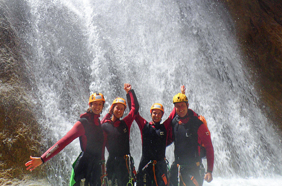 Los geht Dein Outdoor-Event Canyoning in Golling an der Salzach in der Fischbach-Schlucht. Hier erwartet Dich eine fantastische Naturkulisse. Der erste Teil der Tour ist leichter und bietet neben fordernden Abseilpassagen auch erfrischende Rutschen, spaßige, kleine Sprünge und tolle Aussichtsplateau. Nach einer kurzen Pause geht es dann weiter ins Wiestal zur Almbachtour. Hier werden die Abseilpassagen und Sprünge höher, die Wasserrutschen steiler und die Herausforderungen größer – dafür wartet hier aber auch Outdoor-Spaß ohne Ende auf Dich! Und am Ende das großartige Gefühl, es geschafft zu haben.