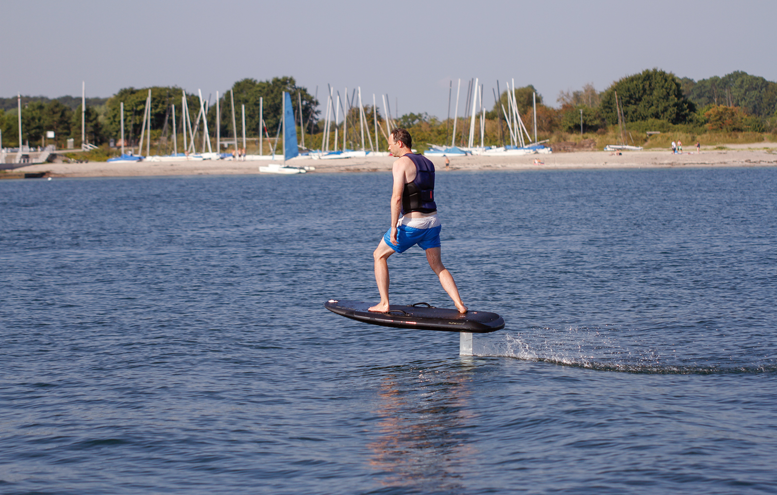 Das Fliteboard ist ein elektrisches Surfbrett, das in Australien entwickelt wurde. Mit einer Durchschnittsgeschwindigkeit von 25 km/h, die über eine Bluetooth-Handfernbedienung gesteuert wird, schwebst Du etwa einen Meter über dem Wasser. Die Besonderheit ist, dass das eFoil Board fast lautlos und sehr umweltfreundlich betrieben wird. Nahezu ohne Widerstand gleitest Du durch den Wind. Egal ob auf dem See oder im Meer, das Fliteboard ist überall ein treuer Begleiter, der puren Spaß und Lebensfreude vermittelt.