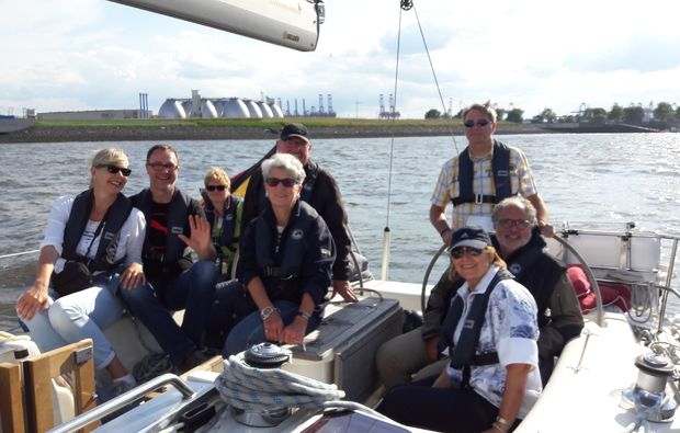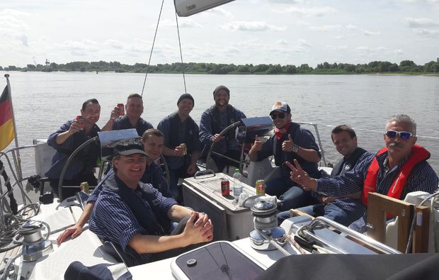 Bevor es jedoch richtig losgehen kann, erhältst Du noch eine kleine Einweisung in das Boot. Du lernst die Technik genauer kennen und erfährst alles Wissenswerte zur Navigation, zum Verhalten an Bord und auch zur Sicherheit. Darüber hinaus wirst Du auch in der Wetterkunde unterrichtet. Denn jeder Seefahrer sollte das Wetter deuten können, bevor er aufs Wasser geht. Übrigens hast Du bei diesem Segeltörn auf der Elbe in Hamburg die Möglichkeit, das Boot auch selbst zu steuern.