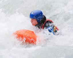Wie der Name Hydrospeed schon vermuten lässt, findet der Sport im Wasser statt und ist ordentlich schnell. Es handelt sich bei dem Actionerlebnis um ein Wildwasserschwimmbrett. Du liegst halb auf dem Board, während Du rasante Wildbäche hinunter heizt.