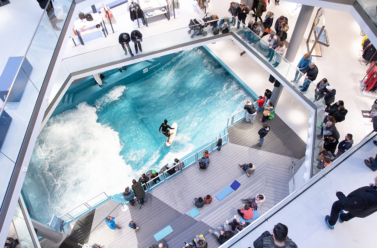 Surf-Session auf stehender Welle im Einkaufszentrum