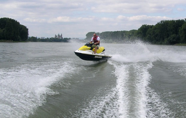 Bitte beachte, dass kein Teilnehmer alleine mit dem Jetski auf dem Rhein fahren darf, auch wenn dieser einen Sportbootführerschein Binnen besitzt. Aus Sicherheitsgründen muss ein Instruktor auf dem Jetski mitfahren. Gegen Spriterstattung eines Zweitgefährts (ebenfalls Jetski) kann der Instruktor jedoch nebenher fahren und der Teilnehmer hat die Möglichkeit jemand anderen mitzunehmen. Die Spritkosten für das Begleitfahrzeug müssen vor Ort beglichen werden.