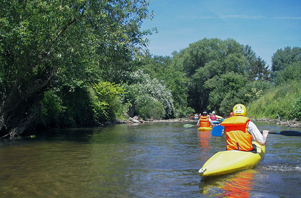 Der Spaßfaktor steht neben dem Erleben der Natur im Vordergrund. Genieße das Wechselspiel von kleineren Wellen und starken Strömungen mit jedem Paddelschlag und entspann Dich während dieser unvergesslichen Kanutour im Kalletal.