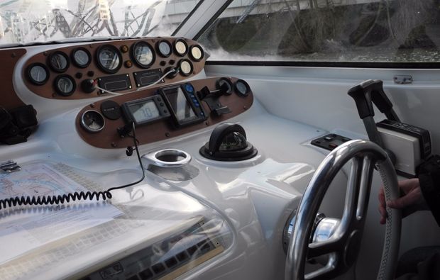 Bevor es jedoch raus aufs Wasser geht, erhältst Du zunächst eine umfangreiche Sicherheitseinweisung. Denn die Sicherheit kommt ja bekanntlich zuerst. Aus diesem Grund solltest Du auch mit allen nötigen Vorkehrungen vertraut sein, damit Du im Fall der Fälle auch richtig handeln kannst. Darüber hinaus wird vor der Abfahrt die Motoryacht vorbereitet, damit sie auch den hohen Erwartungen gerecht wird. Bei dieser Gelegenheit kannst Du Dich gleich ein wenig mit dem Boot vertraut machen, das Dich später sicher übers Wasser tragen wird. Begleitet wirst Du dabei übrigens von einem erfahrenen und fachkundigen Bootsführer. Dieser wird auch dafür sorgen, dass Du sicher wieder an Land ankommst.