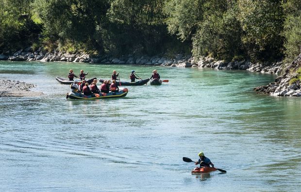 Rafting zählt schon lange als der Klassiker unter allen Wildwassertouren. Genieße den nassen Spaß im Rafting-Boot und freue Dich auf wilde Manöver. Euer geprüfter und erfahrener Guide wird Euch kurz in die Geheimnisse des Raftings einführen. Nach ein paar Schwimmübungen in der Spezialausrüstung geht es dann schon ans Eingemachte. Mit Deinem Rafting-Guide im Boot kannst Du eins werden mit der Natur und die Kraft und Intensität des Wassers spüren bzw. dagegen ankämpfen.