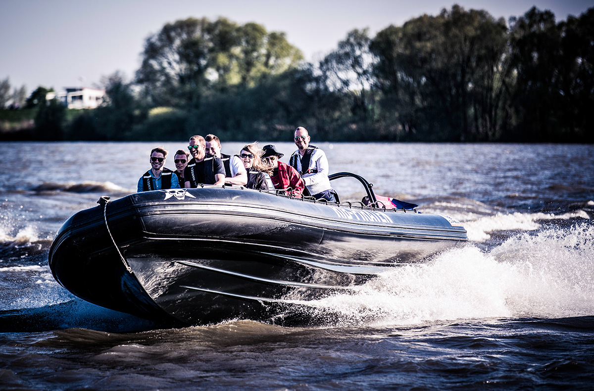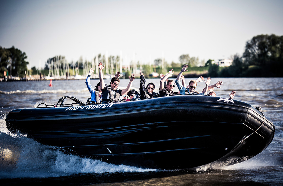 Erlebe mit den RIB Piraten die schnellste Hafentour in Spielfilmlänge. Hier wird Dir die ideale Kombination geboten, um Hamburg von seiner schönsten Seite mit dem Rausch der Geschwindigkeit zu genießen.