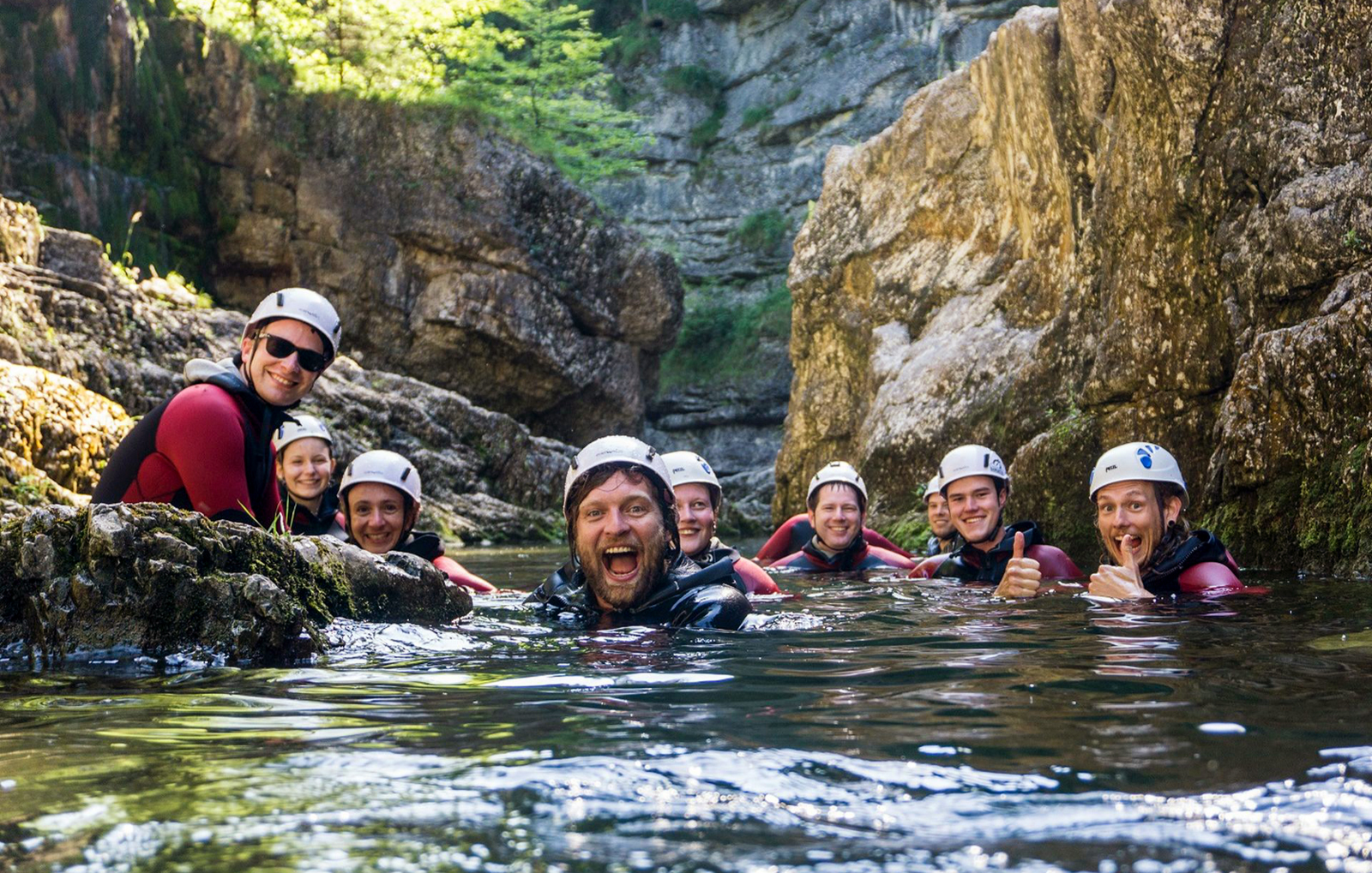 Ihr begeht die Almbachklamm in den Berchtesgadener Alpen und befindet Euch in einer traumhaften Umgebung! Voll ausgerüstet geht es dann auch schon los! Euer erfahrener Guide führt Euch durch die wohl schönste Schlucht Bayerns und Ihr meistert eine Herausforderung nach der anderen. Ihr seilt Euch ab, klettert, rutscht und schwimmt abwechselnd. Die Stimmung Eurer Gruppe ist total ausgelassen und Ihr habt dabei den Spaß Eures Lebens!