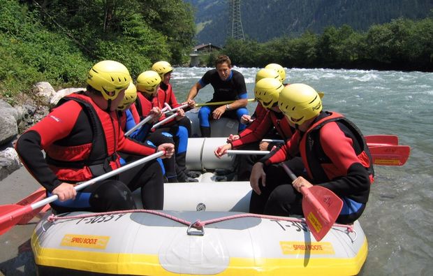 Danach wird aber auch schon das Boot zu Wasser gelassen und der Spaß kann beginnen. Lass Dich vom glasklaren Wasser des Zillers verzaubern und paddel mit Deinen Teamkollegen über leichte Wellen und Walzen hinweg. Ein absolutes Highlight, welches jung und alt gleichermaßen immer wieder aufs Neue fasziniert. Für alle, die gemeinsam etwas Außergewöhnliches erleben möchten, ist dieses Schlauchbootabenteuer genau das Richtige.