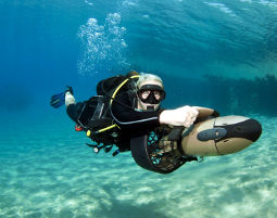 Entdecke im nassen Element das “Easy-Rider-Feeling“ und lerne das coole Fahrzeug besser kennen. Ausgestattet mit einer Leihausrüstung absolvierst Du unter fachkundiger Betreuung Deine ersten Übungen und bekommst ein Gefühl für das Gerät. Mit dem Scooter kannst Du Dich unter Wasser doppelt so schnell fortbewegen, wie mit Flossen, und fühlst Dich dabei, als würdest Du durch den Weltraum fliegen. Sause durch die Tiefe, probiere gewagte Manöver und veranstalte zum Abschluss ein unvergessliches Unterwasser-Wettrennen.