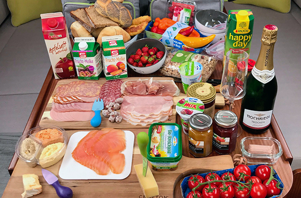 Getränke und Speisen an Bord