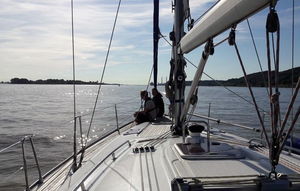 Doch bevor Ihr den Anker lichtet, ist es vorab noch an der Zeit für eine kleine Einweisung. Dabei werdet Ihr mit dem Boot selbst vertraut gemacht. Ihr erhaltet wichtige Informationen zum Thema Sicherheit und zur Navigation. Auch die Wetterkunde wird hier angesprochen. Denn jeder, der auf See fährt, sollte das Wetter deuten können, um nicht in Seenot zu geraten. Übrigens haben wir noch eine kleine Überraschung für Euch. Wenn Ihr wollt, dürft Ihr die Yacht nämlich auch selbst einmal steuern.