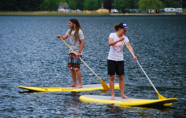 Die Trendsportart aus Hawaii ist bei Groß und Klein beliebt. Denn es fühlt sich nicht nach Sport an. Beim SUP kannst Du Deinen ganzen Körper trainieren und gleichzeitig Spaß haben. Heute geht es um Deine Balance und Dein Körpergefühl. Wer bleibt stehen? Und wer wackelt und fällt ins Wasser?