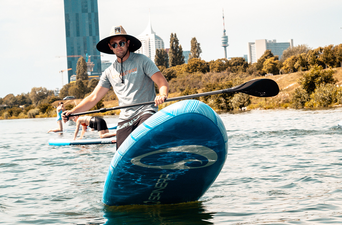 Unter Anleitung der SUP-Instruktoren lernst Du die Grundlagen des Stand Up Paddling Sports kennen. Dazu zählen das richtige Paddel und Kurventechnik und wie Du richtig die Balance hältst. Du genießt die entspannte Atmosphäre auf dem Wasser und gleitest sanft über die glatte Oberfläche der Donau. Du hörst die Vögel zwitschern und das Plätschern der leichten Wellen und genießt die Sonne im Gesicht. Einfach herrlich!