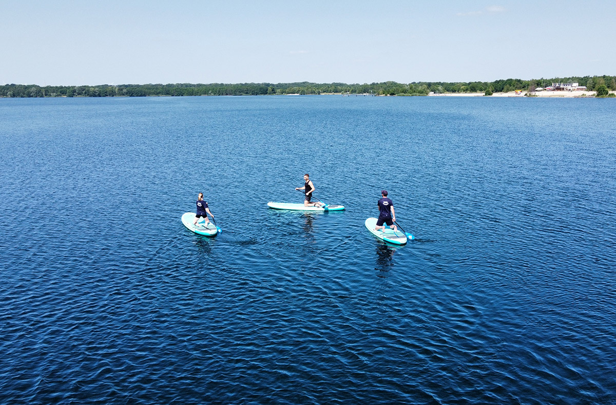 Wenn sanfte Wellen unter Deinem Board tanzen und der Blick über das weite Blau schweift, spürst Du, wie Ruhe und Natur im Einklang zusammenfinden. Beim SUP Cospudener See gleitest Du entspannt über das klare Wasser, während sich das Panorama des Leipziger Neuseenlands in all seiner Schönheit entfaltet. Der Einstieg am flachen, windgeschützten Nordufer macht Deinen Start besonders angenehm. Ganz gleich, ob Du zum ersten Mal auf einem Board stehst oder gerne gleichmäßig Deine Bahnen ziehst – die Auswahl an hochwertigen SUPs vor Ort lässt Dir alle Freiheiten. Lass Dich tragen vom Gleichgewicht zwischen Bewegung und Stille und nimm Dir bewusst Zeit für Dich. Probier’s aus – der Cospudener See wartet auf Dich.