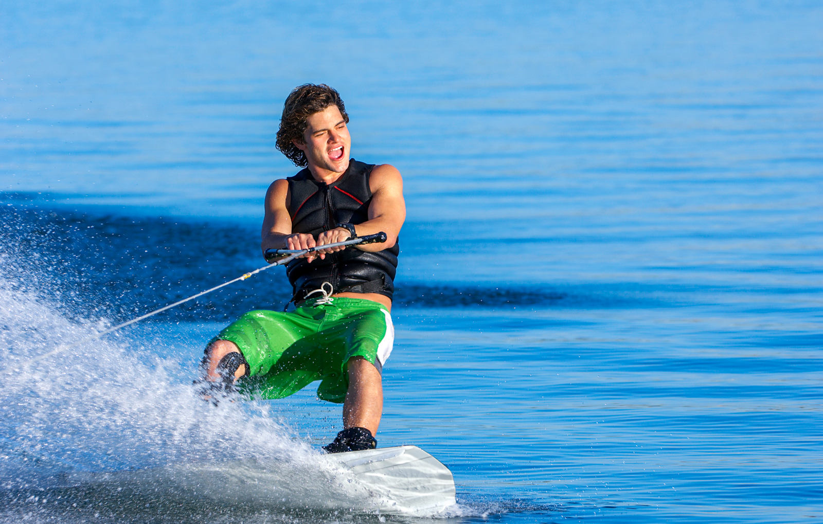 Übers Wasser rasen mit dem Wakeboard! Hast Du Lust? Dann komm zum Wakeboarden nach Poikam.