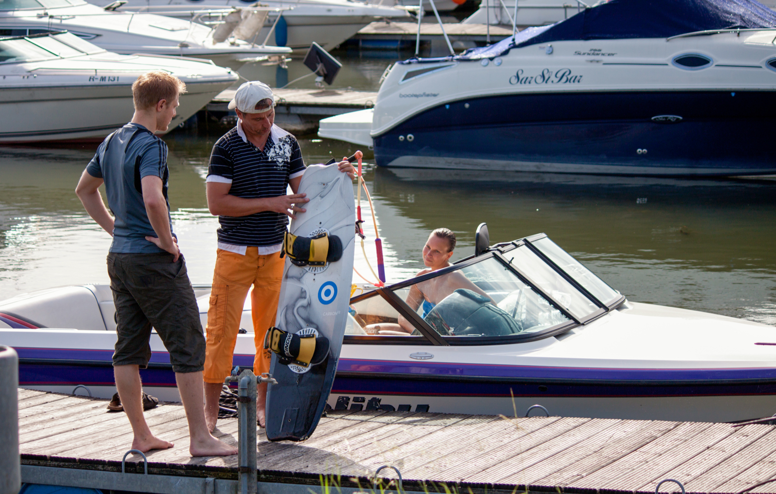 Vorsichtig gleitest Du vom Motorboot in das Wasser der Donau. Ausgerüstet mit Neoprenanzug, Schwimmweste und dem Wakeboard an den Füßen begibst Du Dich in Position. Und ehe Du Dich versiehst, wirst Du von dem starken Motorboot gezogen. Nach wenigen Versuchen stehst Du schon auf dem Wasser. Wahnsinn! Der Wind weht in Deinen Haaren und Du kannst Dein Glück kaum fassen. Achtung, Suchtpotenzial!