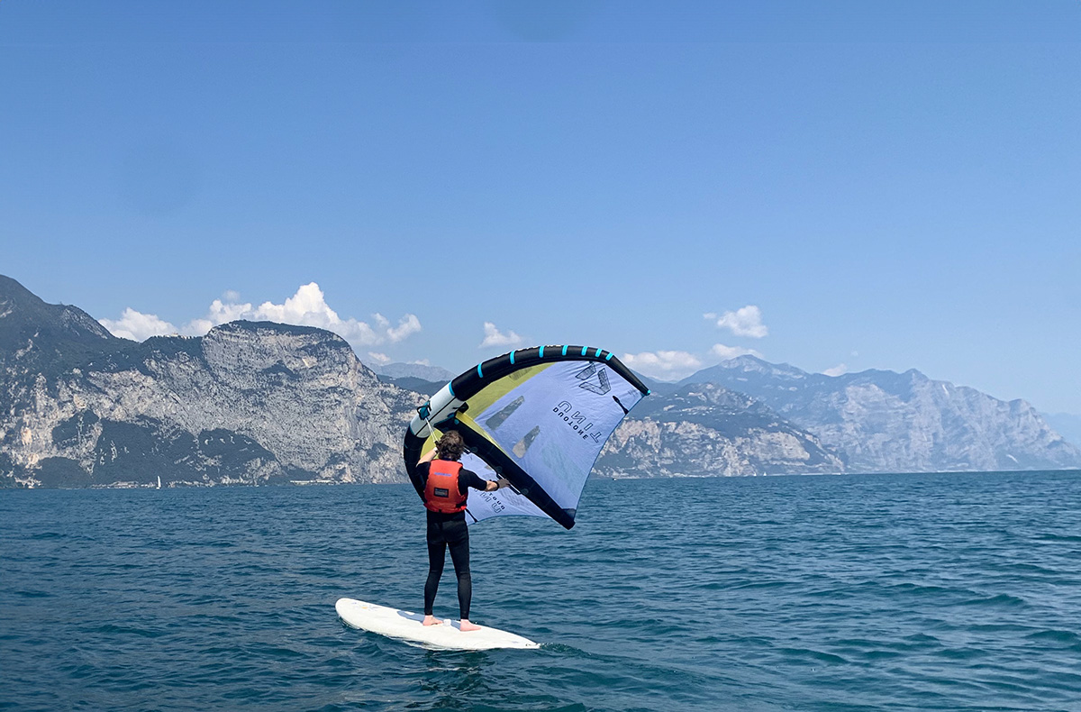 Am Gardasee, umgeben von seiner atemberaubenden Naturkulisse, entdeckst Du beim Wingsurfen den ganz besonderen Wassersport. Ähnlich wie beim Windsurfen fängt Dein Wing den Wind ein, während Du über das glitzernde Wasser gleitest. Die Berge am Horizont schaffen eine beeindruckende Kulisse für Dein Abenteuer. Jeder Moment auf dem Board ist ein Tanz mit den Elementen – ein Erlebnis, das Du so schnell nicht vergisst!