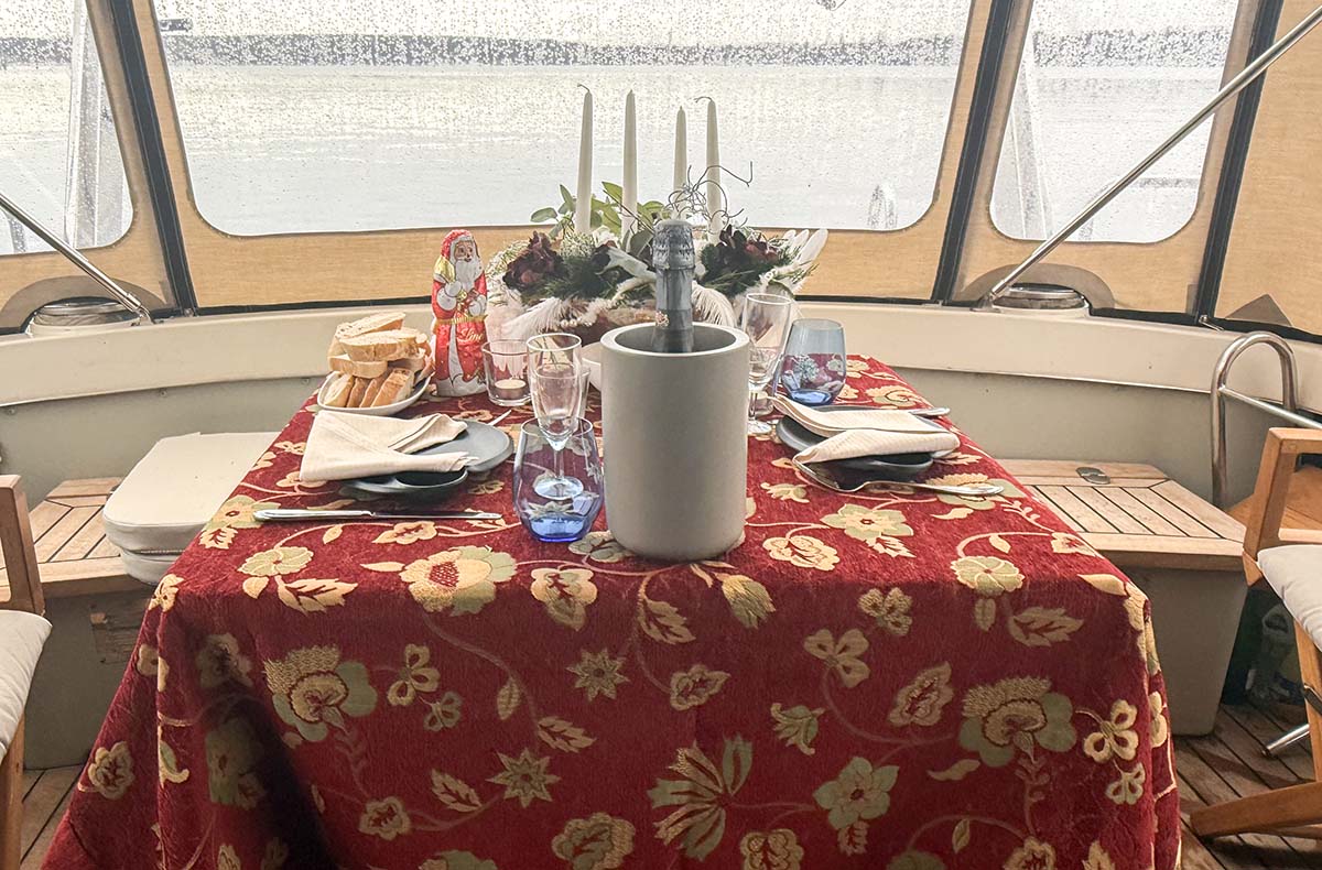 Der Glühwein und die Bratwürste werden an Bord frisch zubereitet