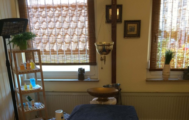 In Ostfildern werden Sie mit einem Vorgespräch und einem Getränk auf Ihr Verwöhnerlebnis eingestimmt. Danach schweben Sie auf einer Wolke der Entspannung dahin, denn Ihre Fußmassage beginnt. Bei der ayurvedische Fußmassage werden Ihre kompletten Füße und Unterschenkel ausgiebig massiert, während Sie ein tiefes Entspannungsgefühl genießen. Ein wohliges Gefühl breitet sich im ganzen Körper aus, und nicht nur Ihre Füße werden sich danach wie neu anfühlen!
