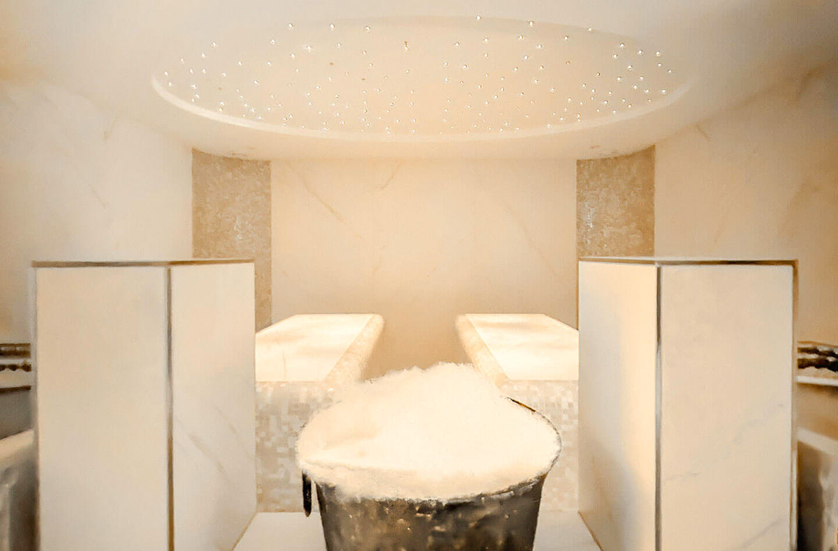 Im Rasul Dampfbad wird Heilschlamm sanft aufgetragen, um Eure Haut zu pflegen und Euren Geist zu beleben. Die wohltuende Wirkung des Marmorsteins im Hamam Dampfbad entspannt zudem die Muskeln. Zwei kleine Saunen mit verschiedenen Temperaturen stehen bereit, um jede Verspannung zu lösen und neue Energie zu tanken.