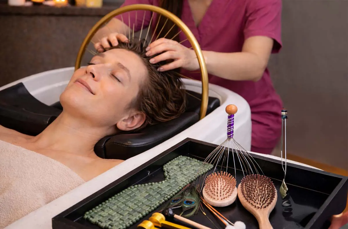 • Haare mit einem Holzkamm bürsten, Kräutertee trinken, Kräuterfußbad genießen, Aroma-Therapie zur Entspannung von Geist und Körper, „Himmelstor öffnen“-Technik zur Aktivierung der Kopfmeridiane, Sanfte Gesichtsreinigung (Make-up-Entfernung), Warme Kräuter-Augenkompresse zur Reduzierung dunkler Augenringe und Entspannung, Massage von Nacken und Schultern, Gesichtsmaske mit Jadesteinen-Massage & Kräuter-Gesichtsmaske, Zweifache Haarwäsche mit Kräuterextrakten, Spülung der Haare mit Kräuteressenzen, Sanftes Föhnen und Haarstyling