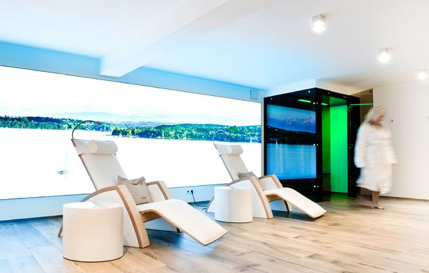 Genießt ein top modernes Ambiente und eine Ausstattung, die sich absolut am Zeitgeist orientiert. Luftig, hell und aufgeräumt präsentiert sich die Atmosphäre und bietet beste Voraussetzungen für ein Wohlfühl-Event zu Zweit. Wie der Name Private-Spa schon verrät, genießt Ihr außerdem totale Privatsphäre. Nur Du und Deine Begleitperson habt für insgesamt zwei Stunden Zutritt und genießt das herrliche Ambiente in Ruhe und Vertrautheit. Lasst Euch in der finnischen Sauna bei 90° Grad ins Schwitzen bringen, kühlt Euch danach am Eisbrunnen ab und gönnt Euch die wohltuende Wirkung der Infrarotkabinen. Auf den Relaxwärmeliegen genießt Ihr das Plus an Entspannung und nehmt Euch Zeit zum Träumen, während die Erlebnisduschen Euch im Anschluss wieder mit Leben füllen.