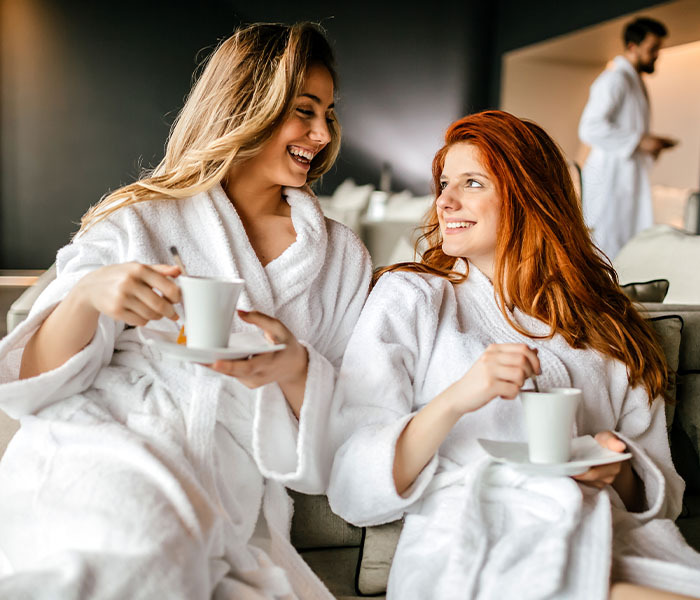 - 1 gepackte Badetasche mit kuscheligen Bademänteln & Badetüchern für die Zeit des Aufenthalts