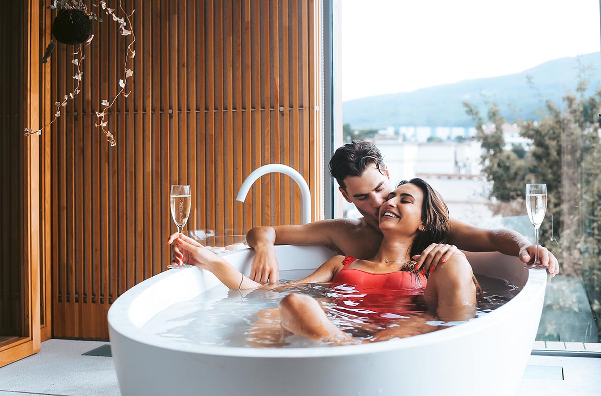 Nachdem Ihr in der Sauna geschwitzt habt, ein paar Bahnen im Pool gezogen habt, lockt eine herrliche Ganzkörpermassage mit hochwertigem Schokoladenöl zu luxuriösen Momenten. Mit duftendem, warmem Öl aus der Kakaobohne und mit versierten Griffen der Massagetherapeuten werden Euch auch die letzten Verspannungen wegmassiert. Danach genießt Ihr ein wohltuendes Bad in der sogenannten Kaiserwanne. Bei Kerzenschein und sanfter Musik entspannt Ihr in der Kupfer-Kaiserwanne bei einem Glas Sekt und lasst Euren Tag bei Wellness für Zwei in Osnabrück in Seelenruhe ausklingen.